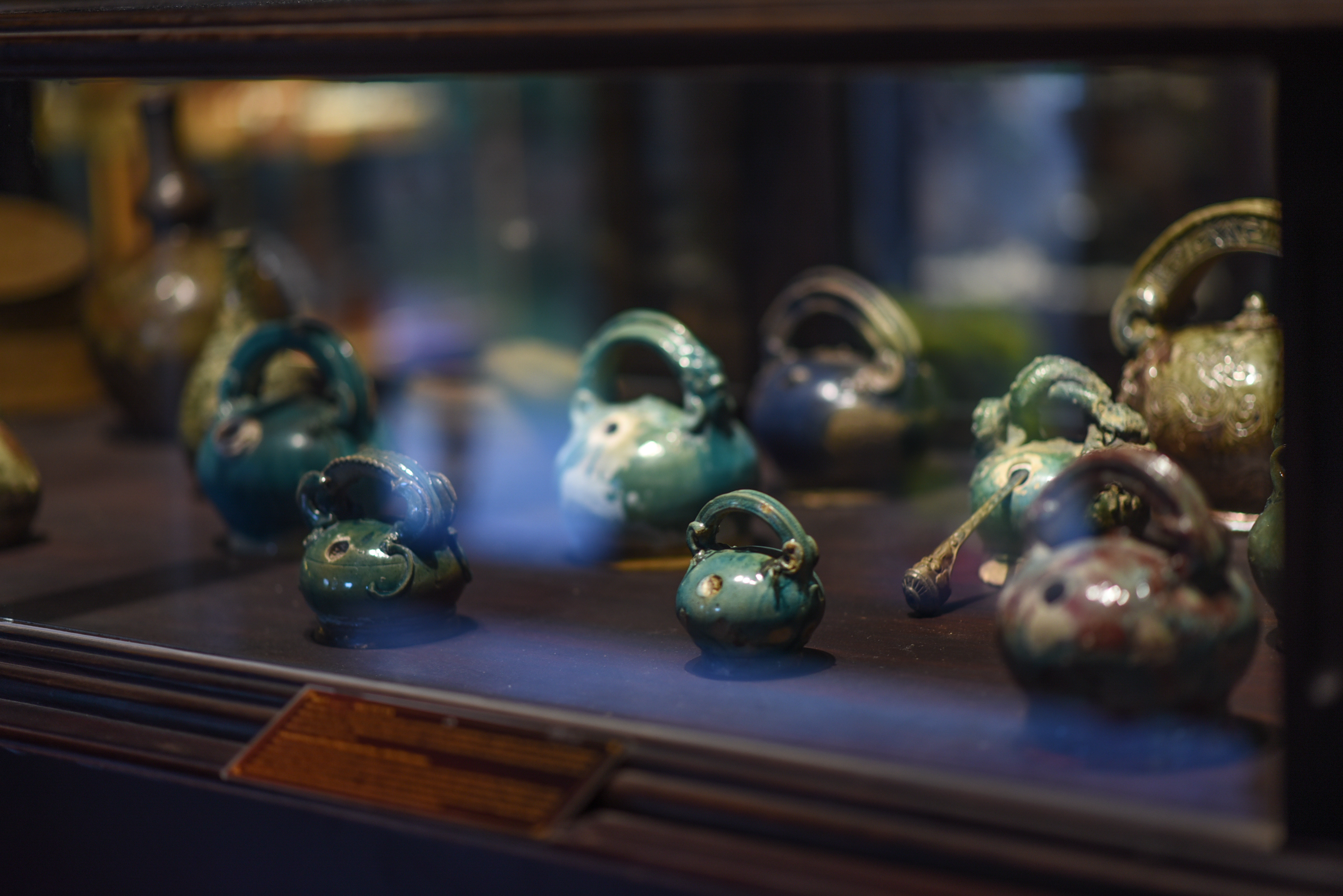 Những bình vôi gốm Quảng Đức men sò huyết. Ảnh: thanhnien.vn