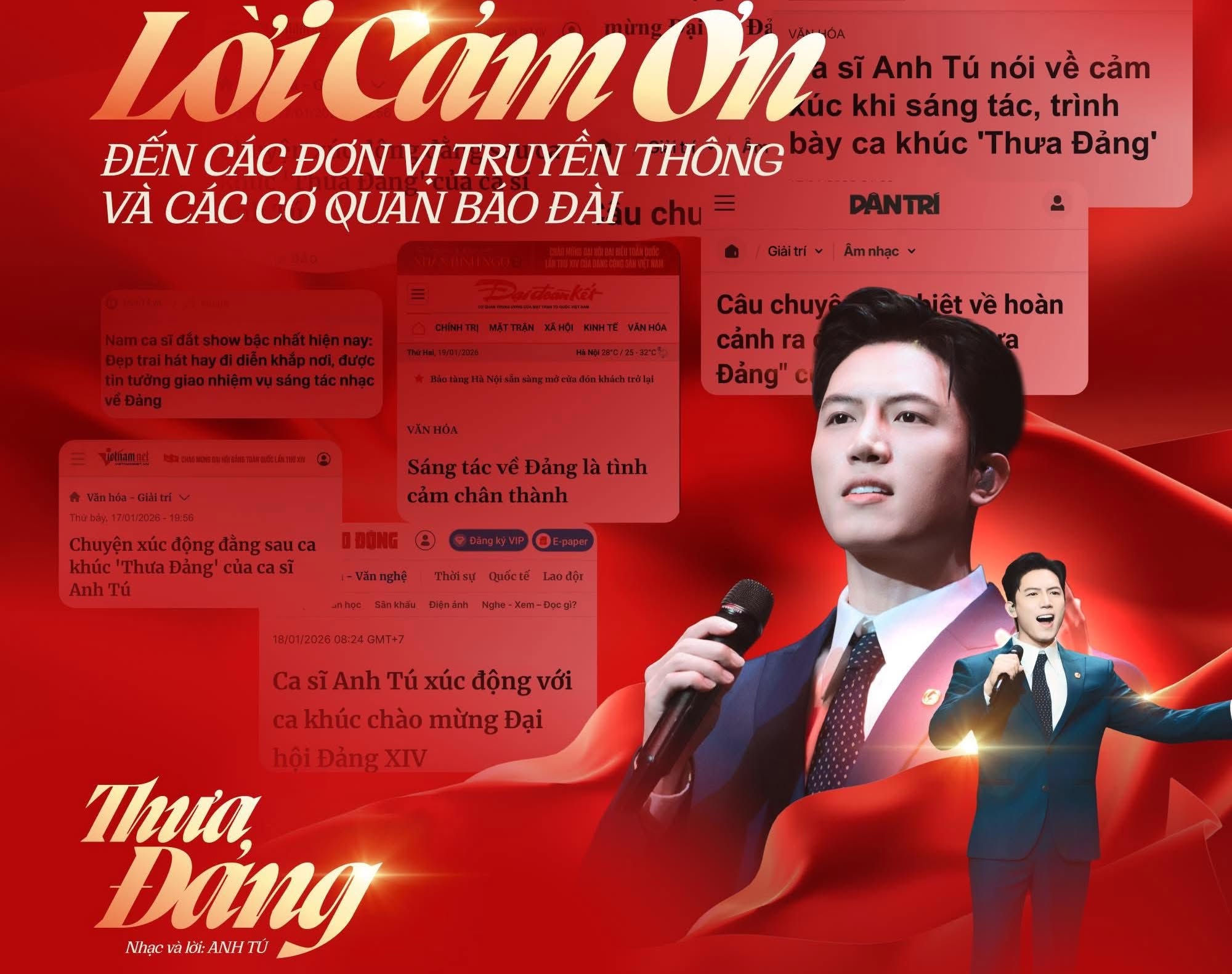 Ca khúc "Thưa Đảng" được nghệ sĩ Anh Tú sáng tác cho chương trình Mãi mãi niềm tin theo Đảng. Ảnh: Internet