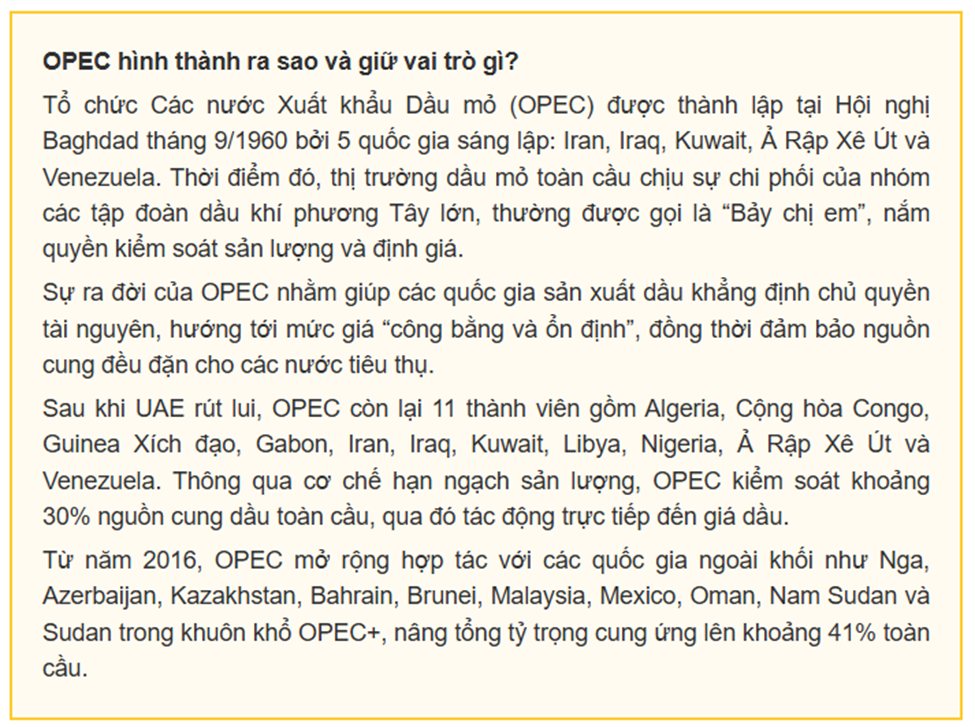 Các Tiểu vương quốc Ả Rập Thống nhất (UAE) tuyên bố rút khỏi Tổ chức Các nước Xuất khẩu Dầu mỏ (OPEC) và cơ chế mở rộng OPEC+, đánh dấu bước đi đáng chú ý làm suy yếu một trong những liên minh có ảnh hưởng lớn nhất đối với thị trường năng lượng thế giới.