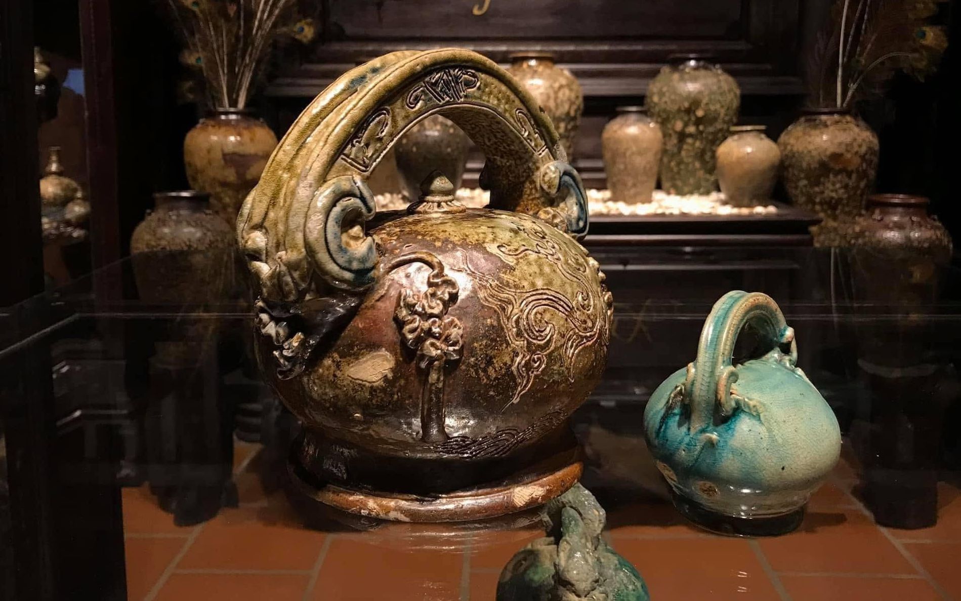 Những bình vôi gốm Quảng Đức men sò huyết. Ảnh: thanhnien.vn