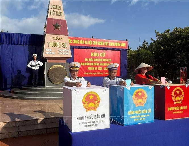 Cử tri đặc khu Trường Sa bỏ phiếu bầu cử Đại biểu Quốc hội khóa XVI và Đại biểu Hội đồng nhân dân các cấp nhiệm kỳ 2026 - 2031, ngày 15/3/2026. Ảnh: Đặng Tuấn/TTXVN