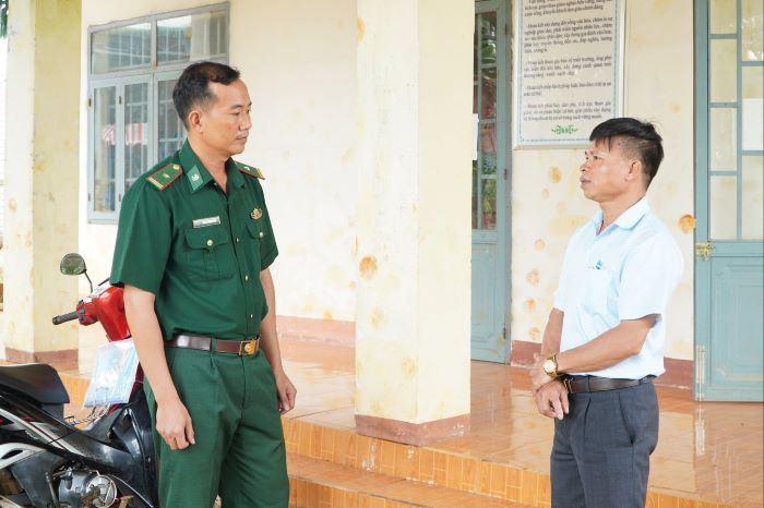 Ảnh: Đảng viên Đồn Biên phòng Đắk Song, xã Thuận Hạnh thường xuyên gặp gỡ, trao đổi với cán bộ, đảng viên các thôn bản để nắm tình hình hoạt động của chi bộ, ban tự quản để có sự hỗ trợ khi khó khăn (Nguồn: https://dangcongsan.vn)