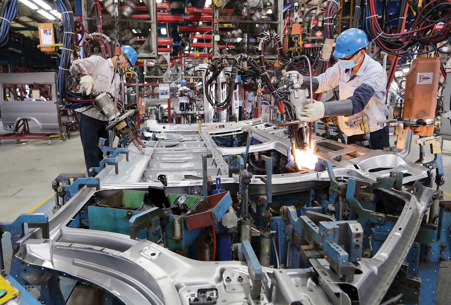 Công nhân làm việc trên dây chuyền tại Nhà máy lắp ráp ô tô Ford Hải Dương_Ảnh: vietnamplus.vn